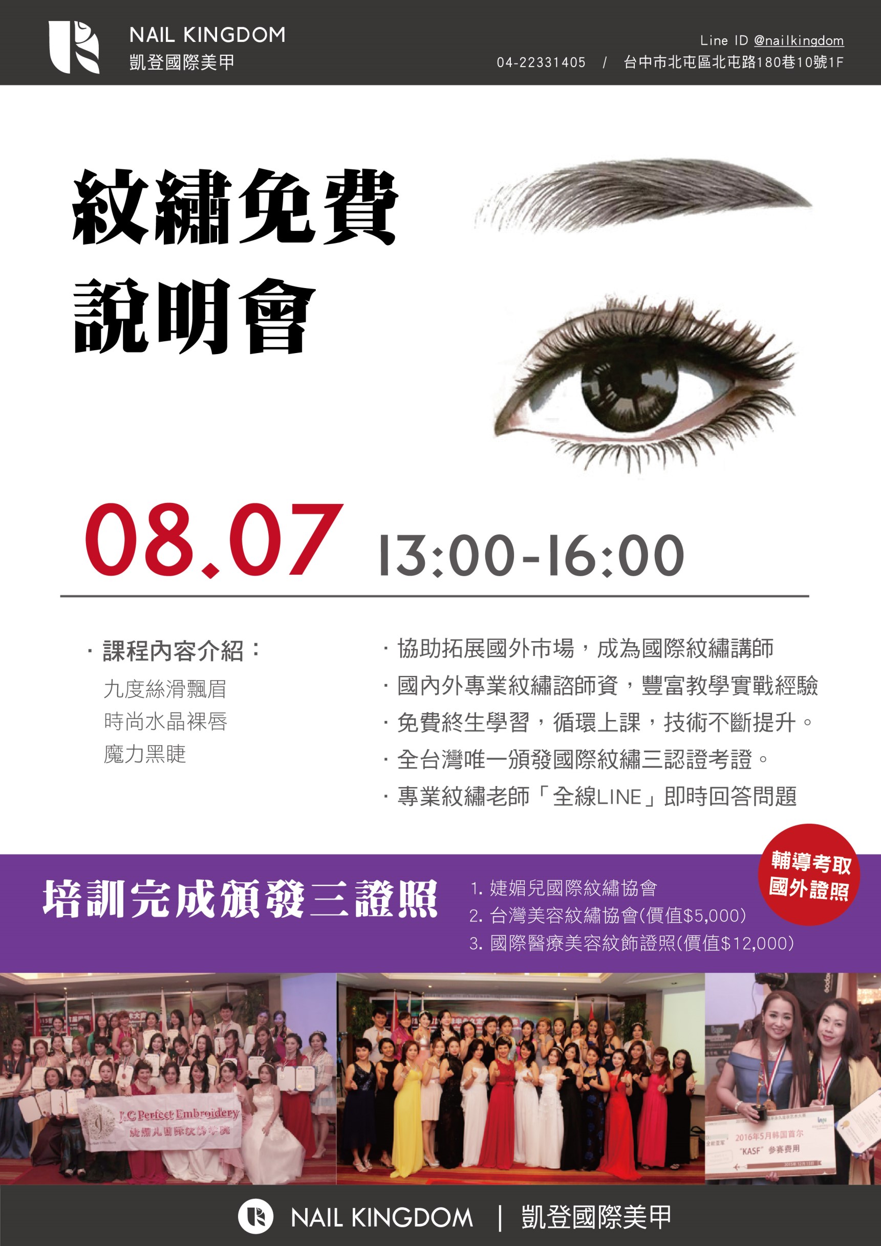 紋繡是時下最夯的職業之一,沒有任何美容基礎的朋友也能成為紋繡師